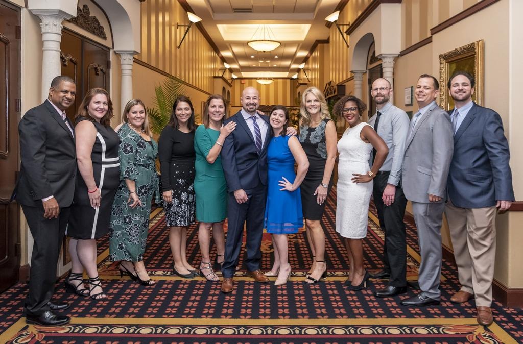 Brian Shultz (center), CIO of Cruise Planners, accompanied by his wife Melissa Shultz(right), is honored by the South Florida Business Journal. He is surrounded by Cruise Planners co-owners and executives, Vicky Garcia(left) and Michelle Fee(right) along with leaders from Cruise Planners Home Office Team.