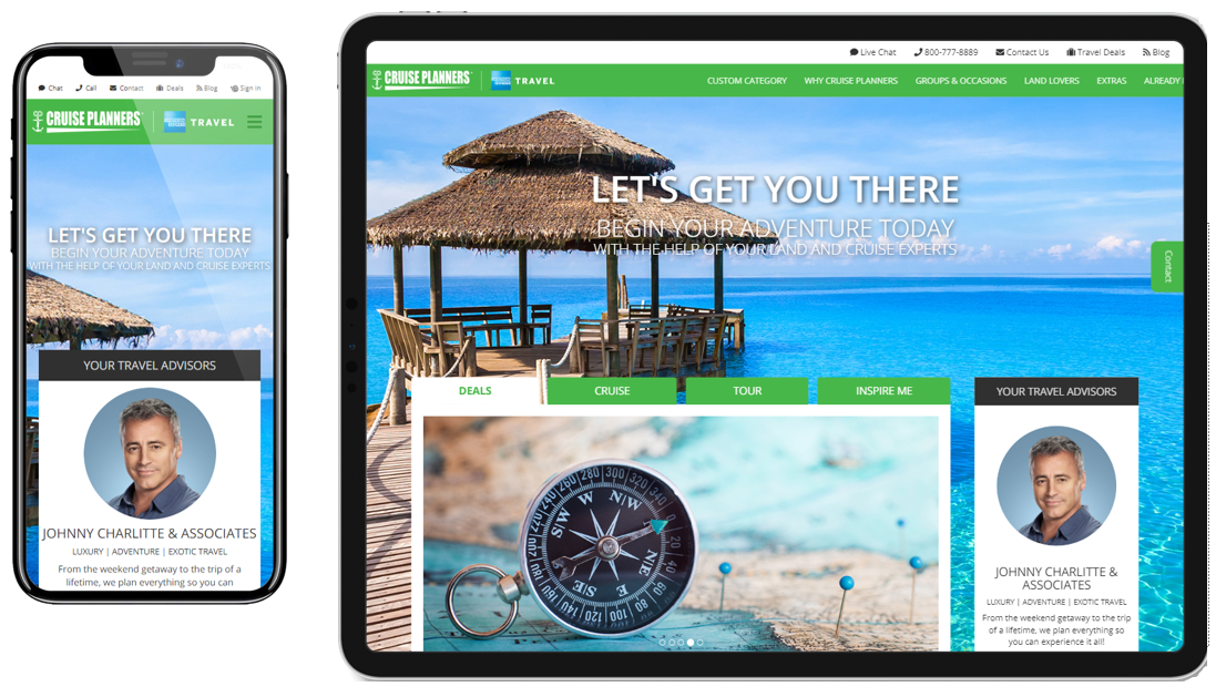Cruise Planners recently launched all new travel advisor websites with three different visual treatments featuring unique content for travel advisors to choose from. These different website options provide our advisors with the flexibility of operating multiple websites; each with their own theme. Travel advisors can select our contemporary theme which encompasses all types of travel and includes value, premium and luxury brands. A second option is a theme focused primarily on land travel such as escorted tour and all-inclusive resorts. A third option is a site focused on premium and luxury travel brands for all types of travel.